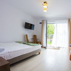 Do dyspozycji gości mamy na parterze z bezpośrednim wyjściem na zewnątrz - 3 pokoje 3-osobowe i 5 pokoi 2-osobowych.Natomiast na piętrze 7 pokoi 2-osobowych z balkonami.